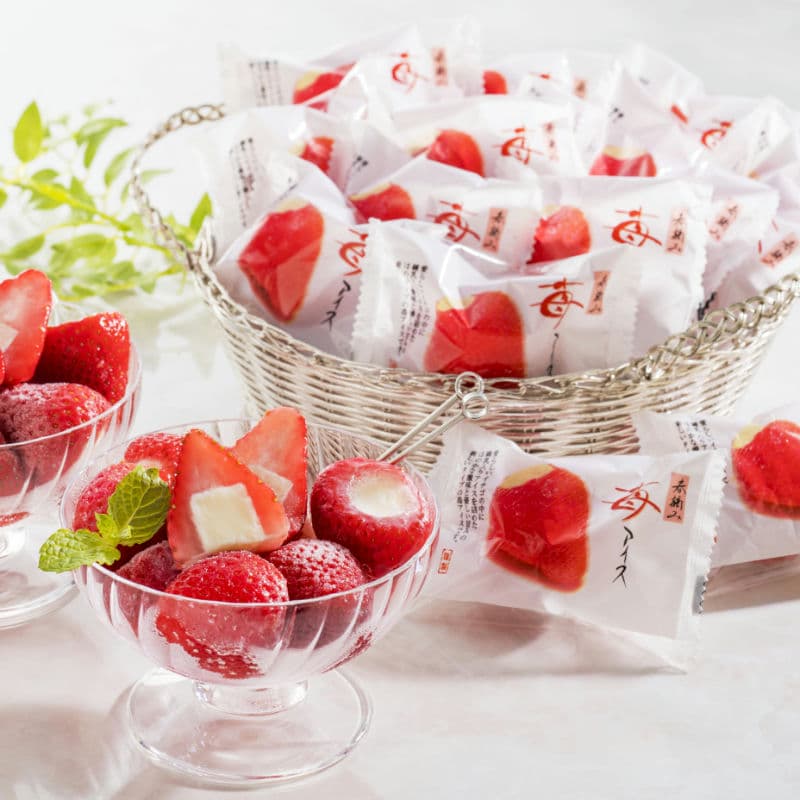 甘酸っぱい苺の中に練乳入りのアイスをぎゅっと詰め込んだ、見た目もかわいい苺アイスです。