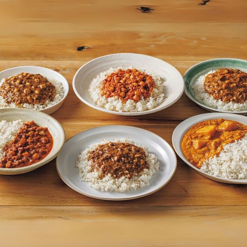 常温保存可能で保存場所を選ばず、いつでもおいしくお召し上がりいただけるレトルトパウチのカレーです。オリジナルのチャツネを使用した甘辛い「無花果チャツネのキーマカレー」や、牛蒡、人参、くわいなどの根菜に甘酢漬けにした生姜を合わせた「根菜と生姜の和風カレー」など6種類の味をセットにしました。