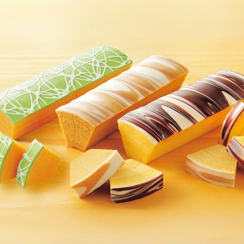 白樺の木肌を2種類のチョコレートで表現した、北海道銘菓。年輪を思わせるしっとり系のバウムクーヘンは、地元でも愛され続ける伝統の味。新商品のめろん味を入れてお届けします。