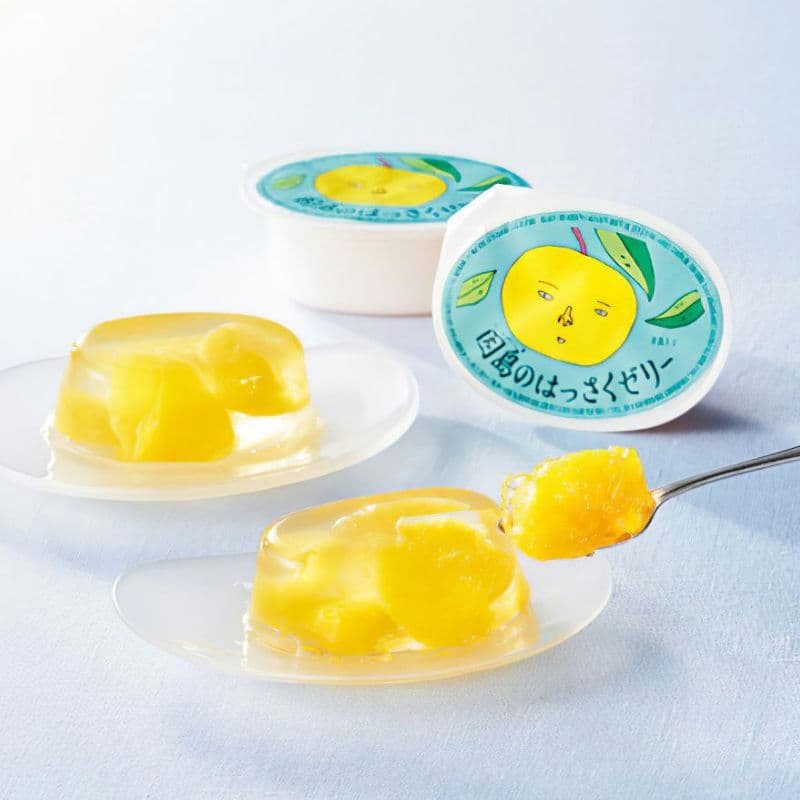 独自のすっぱさと深い味わいでおなじみのはっさくは因島が発祥の地。尾道市因島で年間2000トンの生産量を誇るはっさくの風味をいかしたゼリーです。尾道市因島のはっさくを使用し、はっさくが持つ甘みの中にほのかに感じられる酸味と苦みを活かしたゼリーです。はっさくの果肉の食感と透明感のあるゼリーの食感のコントラストを楽しんでいただけるよう仕立てています。