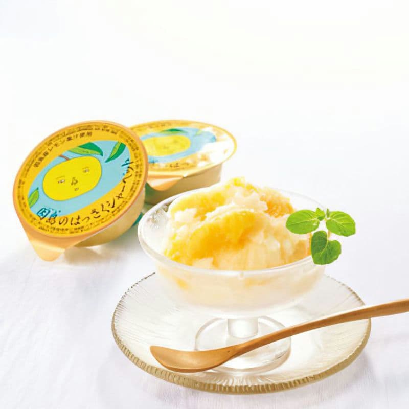 広島県尾道市・因島産のはっさくを使用した、爽やかなシャーベットです。