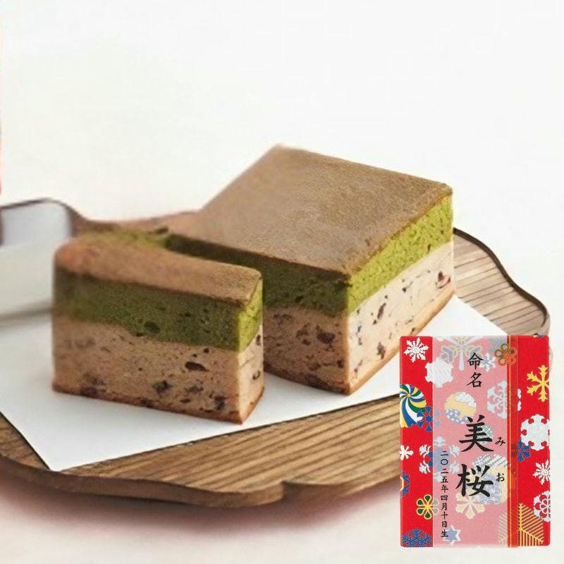 2層仕立てのカステラは、京都「放香堂」の茶師十段が選んだ宇治抹茶使用の抹茶生地と、北海道産小豆を練り込んだ生地。