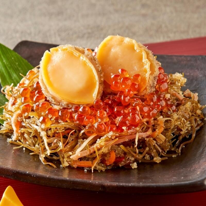 蝦夷あわびを贅沢に使用した松前漬けです。