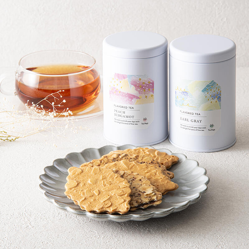 日本を代表する洋菓子店モロゾフのロングセラー「ファヤージュ」と爽やかな香りのフレーバーティーを詰め合わせました。香ばしい焼き菓子とフレーバーティーが贅沢なティータイムを演出します。