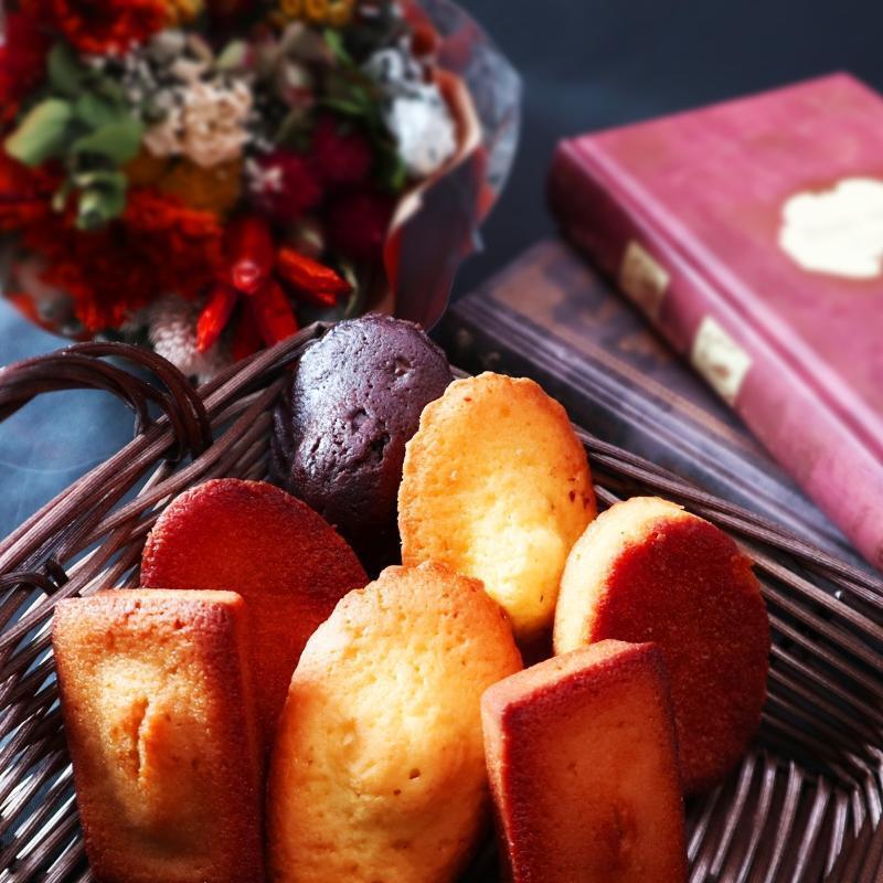 フランス産バターと卵を使用しほんのりレモンをきかせた「マドレーヌ」、ショコラの豊かな香りが広がる濃厚な味わいの「マドレーヌショコラ」、スペイン産アーモンドと卵白に焦がしバターを加えしっとりと焼き上げた「フィナンシェ」、タルト生地の上にアーモンド生地を重ねて焼き上げた「アマンディーヌ」の4種セットです。