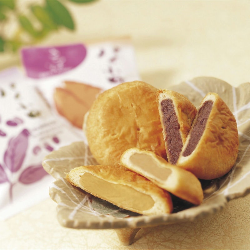 「小豆餡」「さつまいも餡」「栗餡」、それぞれの餡を幾重にも折ったパイ生地で包み、焼き上げました。ほどよい甘さの上品な味わいで、ヘルシーに仕上げております。