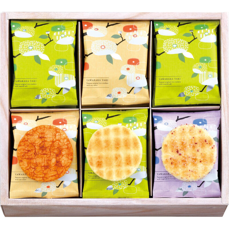 【商品内容】やわらか焼(やき塩×9・直火炊き醤油×6・梅ざらめ×3)