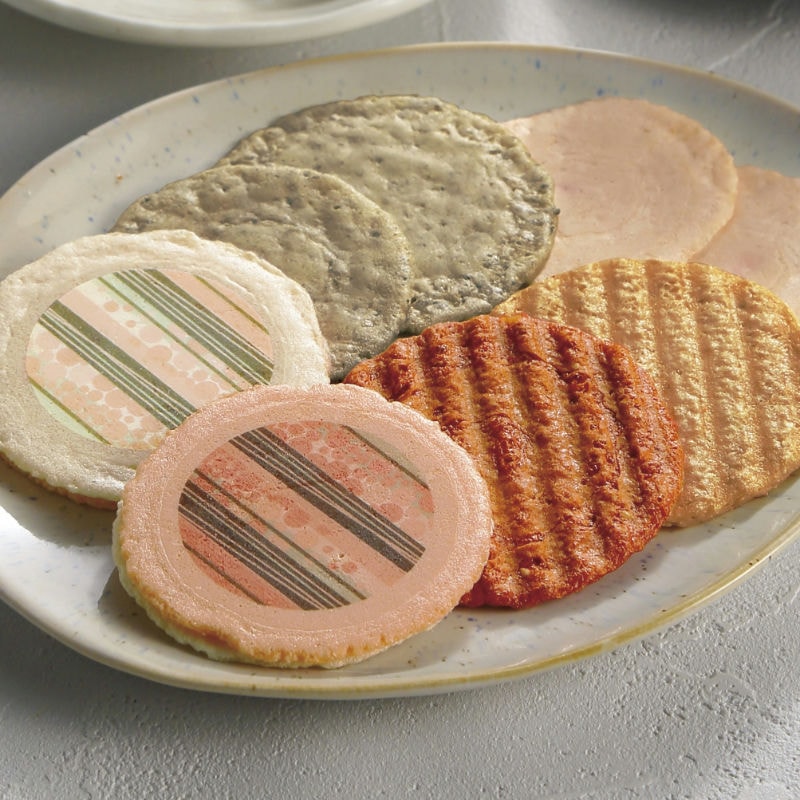 【商品内容】えび煎餅(紅生姜・黒ごま)各3、(紅白せんべいチーズサンド・ふた焼ごま・えび柚子胡椒)各2