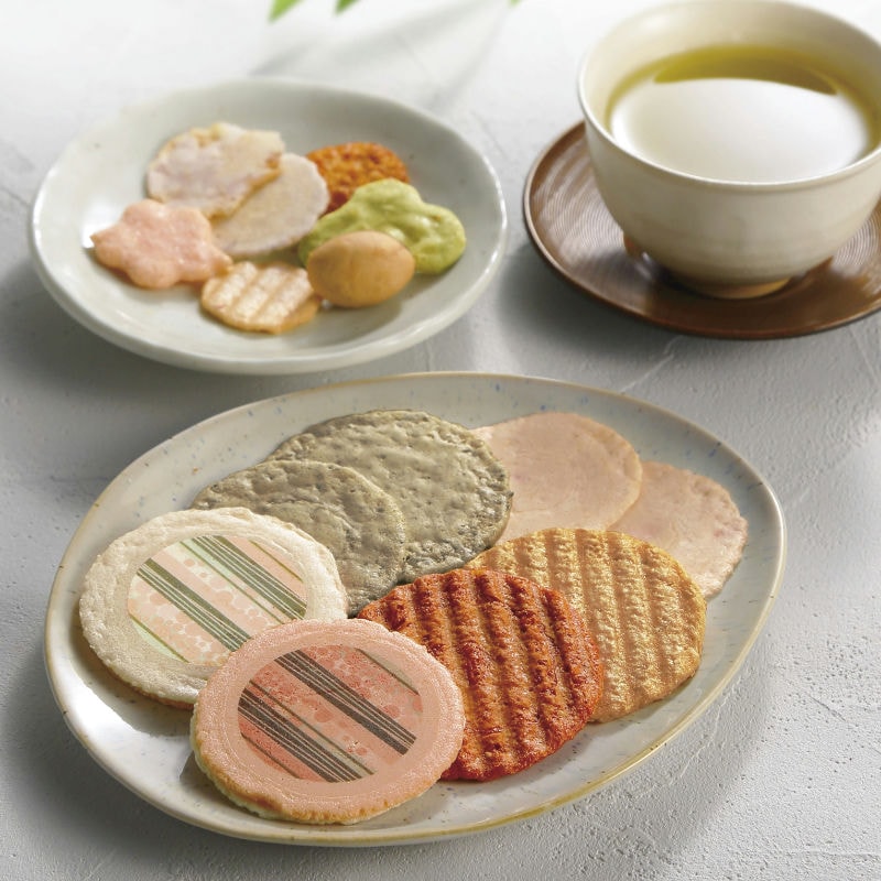 【商品内容】えびのだんらん×4、(黒ごまえび煎餅・ふた焼きごま)各3、(紅白せんべいチーズサンド・ふた焼辛子明太子・紅生姜えび煎餅)各2