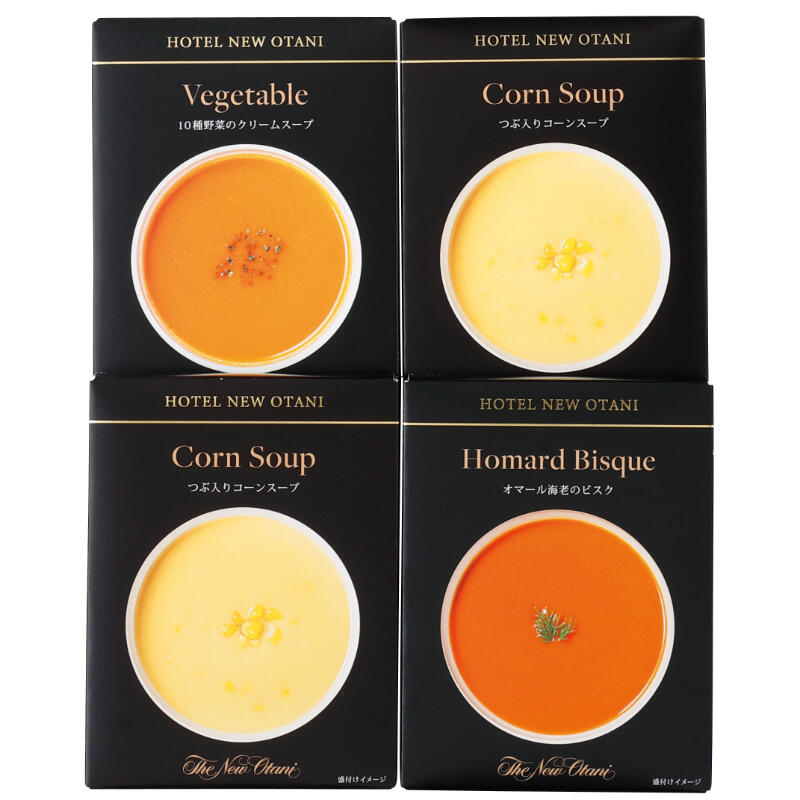 【商品内容】(つぶ入りコーンスープ×2・10種野菜のクリームスープ・オマール海老のビスク)各150g