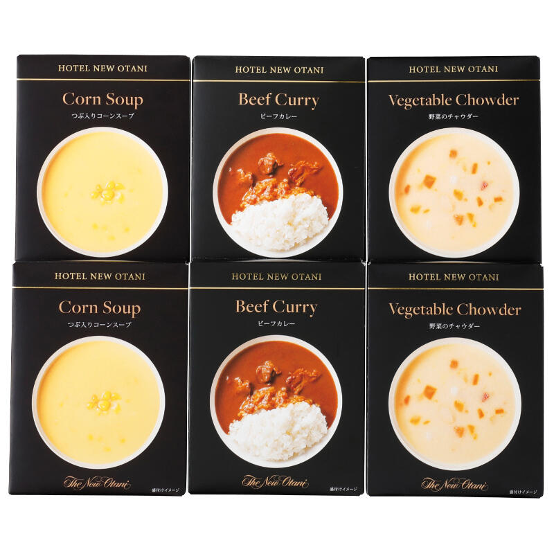 【商品内容】(つぶ入りコーンスープ・野菜のチャウダー)150g×各2、ビーフカレー180g×2
