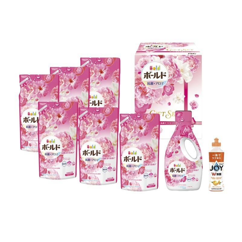 柔軟剤入り液体洗剤「ボールドジェル 」と、食器用洗剤「除菌ジョイコンパクト」のギフトセットです。