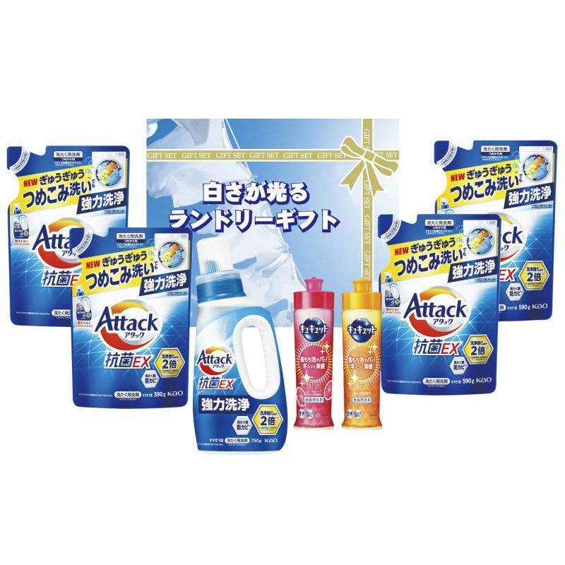 【商品内容】アタック抗菌EX(本体750g・詰替590g×4)、キュキュット(オレンジ・ピンクグレープフルーツ)各220ml