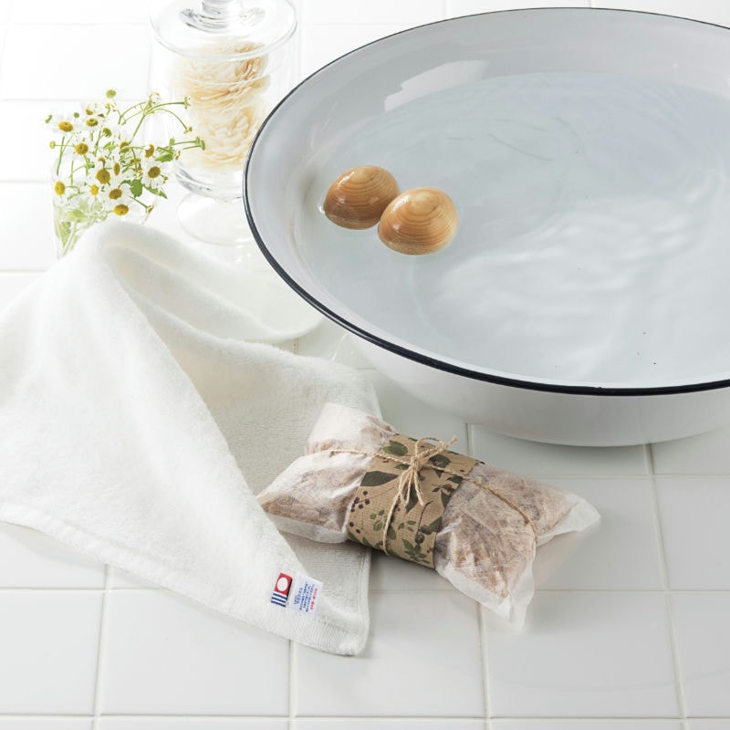 【商品内容】檜タマゴφ42×52mm×2・檜バッグ160×110×20mm:檜、ウォッシュタオル340×360mm:綿100%