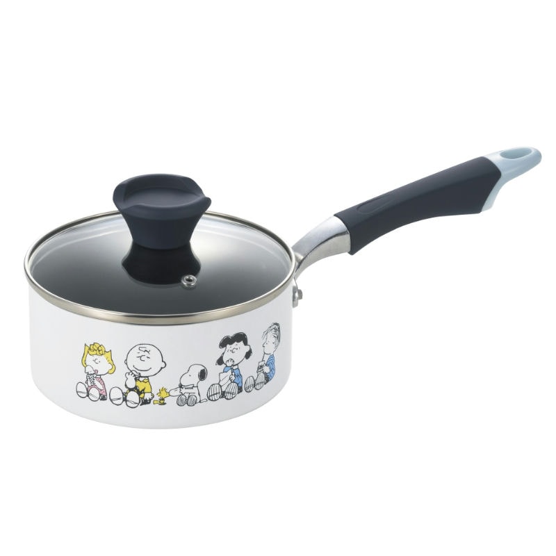 ゆったりとくつろぎムードで和やかな表情をしたスヌーピー&ピーナッツの仲間たちが可愛らしい片手鍋。穏やかな色調で統一されていて、癒しを感じるデザインとなっています。