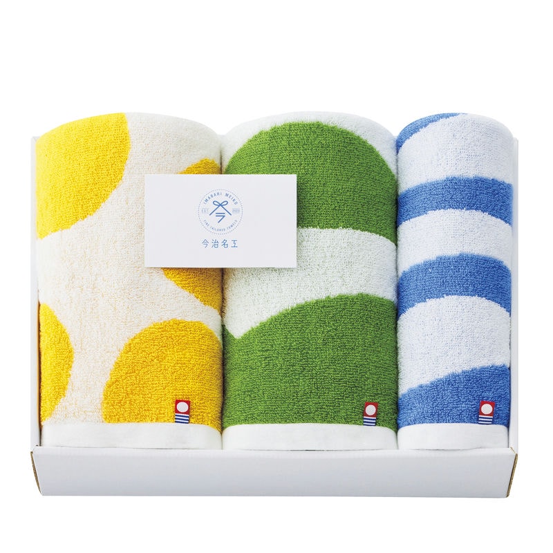 今治からインスピレーションされる風景(みかん・水・島)をアートスタイルに視覚化しております。今治タオルと言えば先晒しジャカード織りのタオル(エコ加工)。化粧箱はフレキソ印刷で昔風を演出いたします。(スリーブ箱に入れます)スリーブから今治の風景が出てくるイメージになります。みかん・水・島をタオルと化粧箱で視覚化したアートスタイルギフトです。