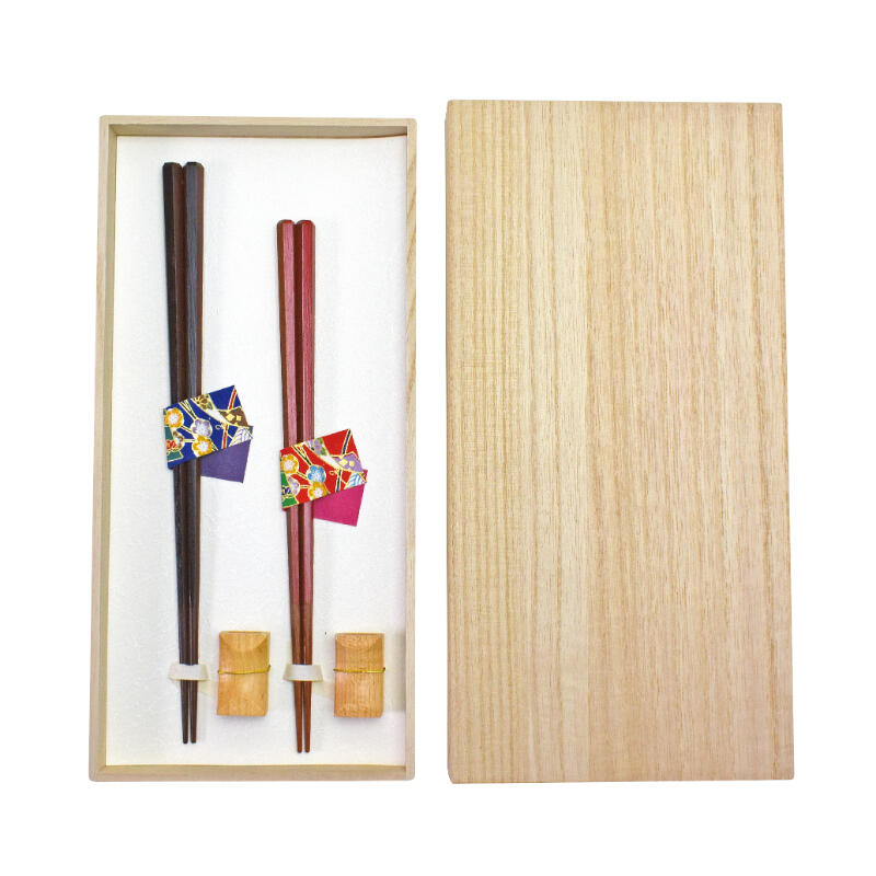 若狭塗の伝統を守り、職人が作り出す逸品。天然木タモを使ったお箸と楓の箸置きのセット。