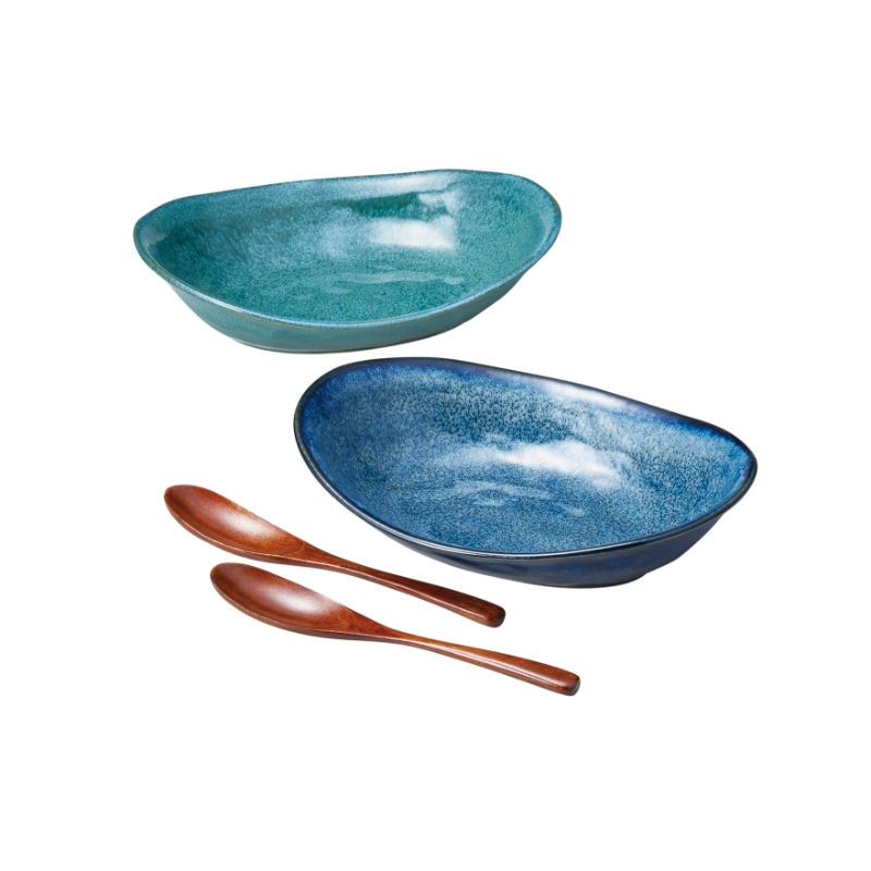 【商品内容】カレー鉢185×240×60mm×2:磁器、木製スプーン195mm×2:天然木