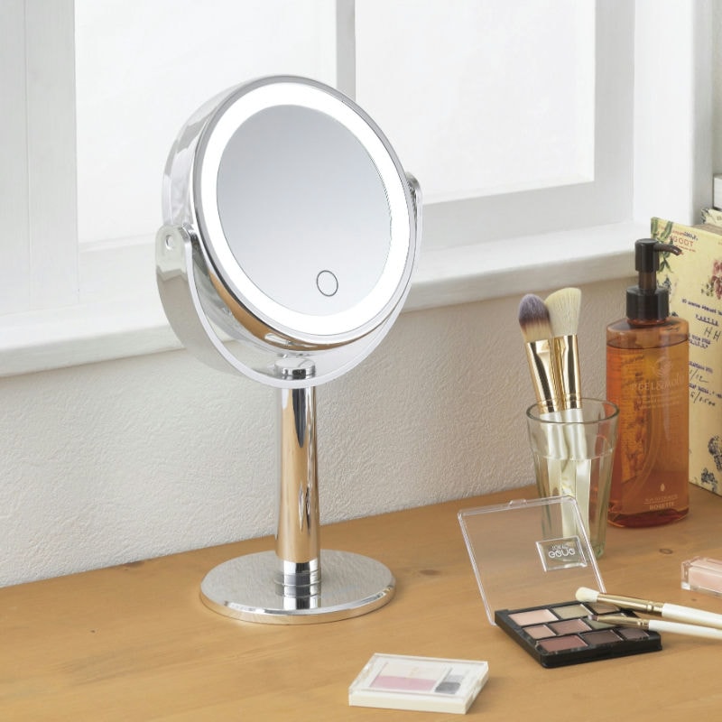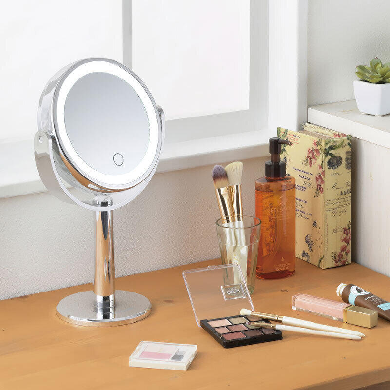 LEDが埋め込まれており、明るく照らしてメイクができます。タッチセンサーで点灯。裏面は3倍の拡大鏡になっています。