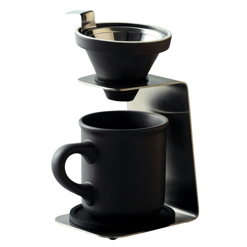 【商品内容】マグφ80×90mm(300ml):磁器、コースターφ100mm:シリコン、ドリッパー95×110×190mm(台含む):ステンレス・磁器