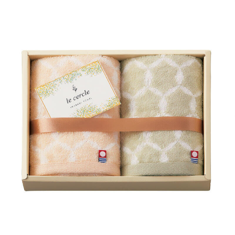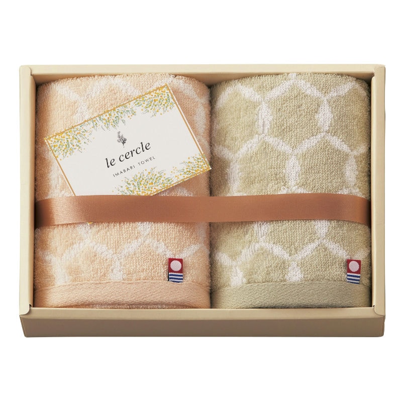 シリーズ名「ル・セルクル」の“セルクル”は、フランス語で「円(サークル)」を意味します。「円(えん)」をくり返したデザインのタオルに人とのつながり、「縁(えん)」が末永く続きますように…という想いを込めました。