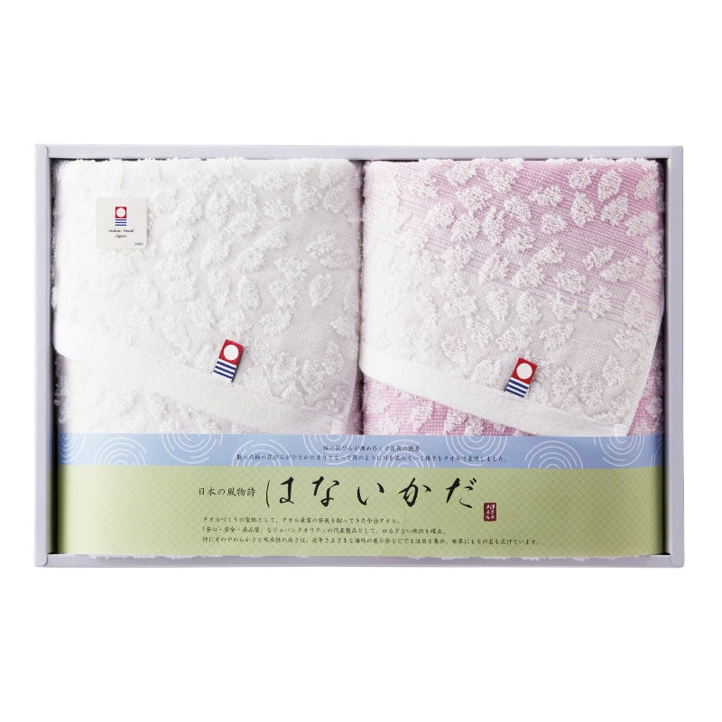 桜の花びらが埋め尽くす花筏の絶景。散った桜のはなびらがひとかたまりとなって筏のように川を流れていく様子をタオルで表現しました。
