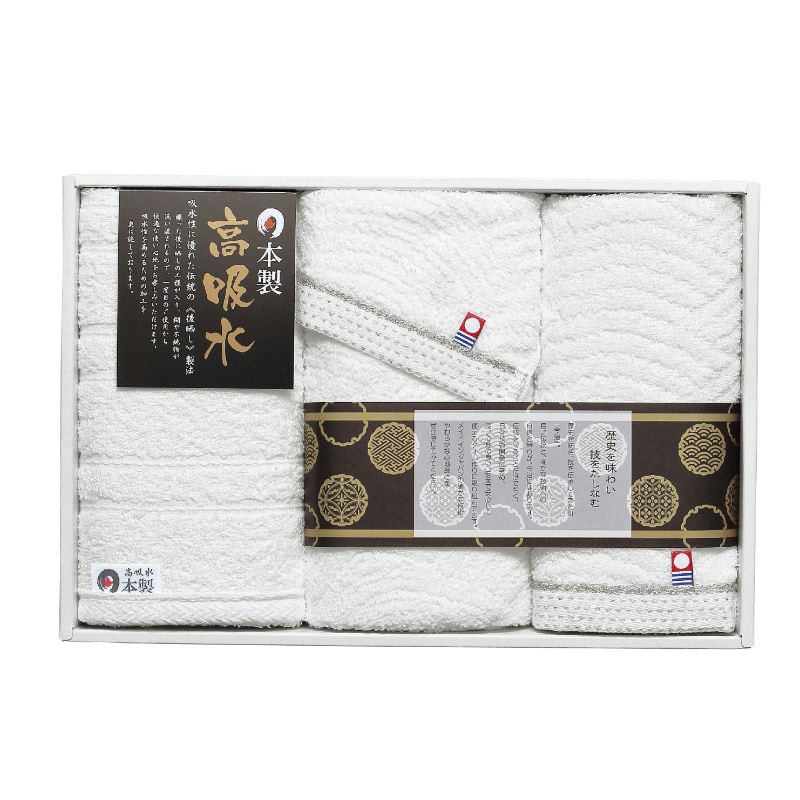 【商品内容】フェイスタオル(高吸水)×1・フェイスタオル(今治)×1・ハンドタオル(今治)×1