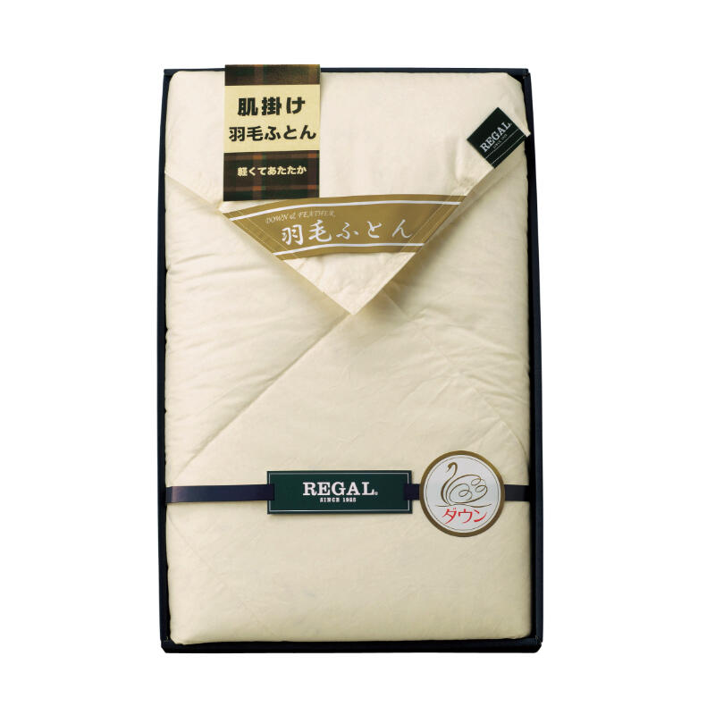 【材質】側地:ポリエステル80%、綿20%・詰物:ダウン50%、フェザー50%(0.4kg)