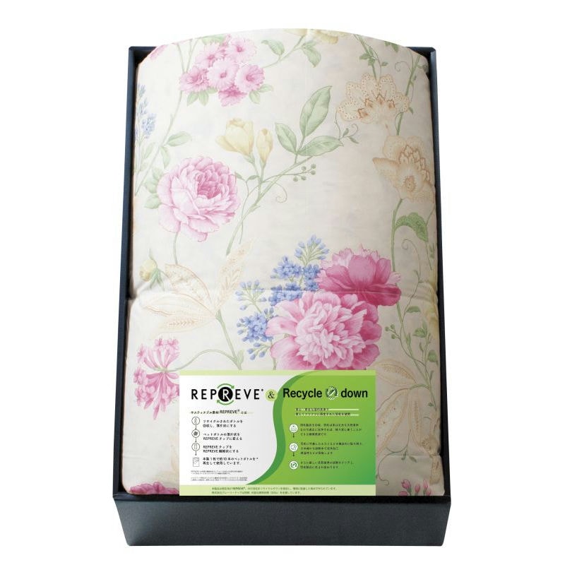 中の羽毛にリサイクルダウンを使用した、環境に配慮した羽毛布団です。