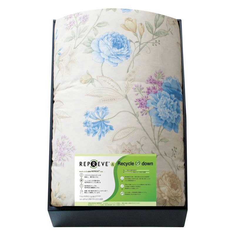 中の羽毛にリサイクルダウンを使用した、環境に配慮した羽毛布団です。