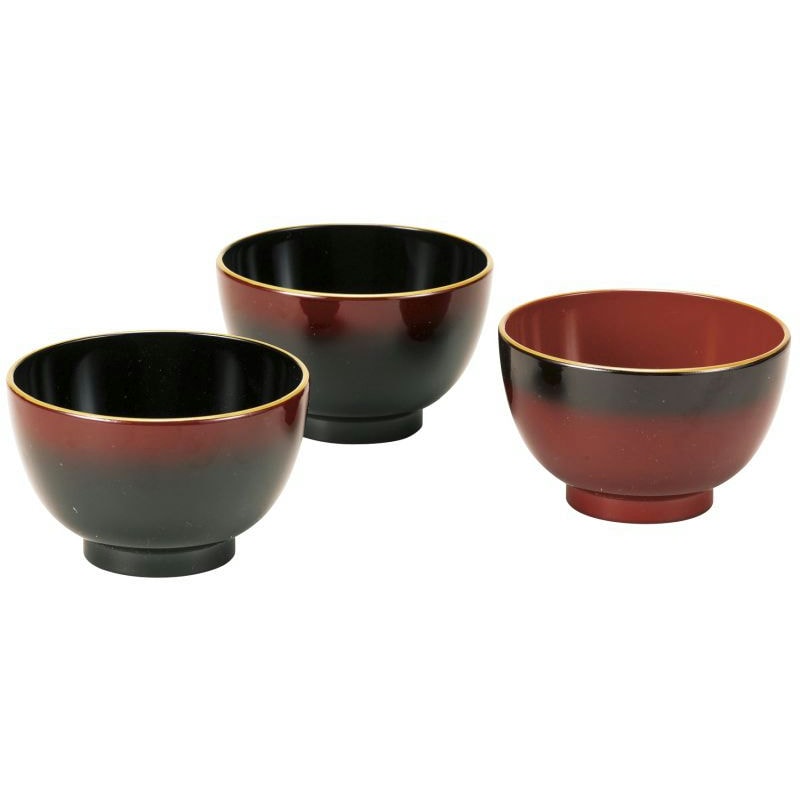 鮮やかに彩られた金縁と、黒と朱のコントラストが美しいぼかし塗です。