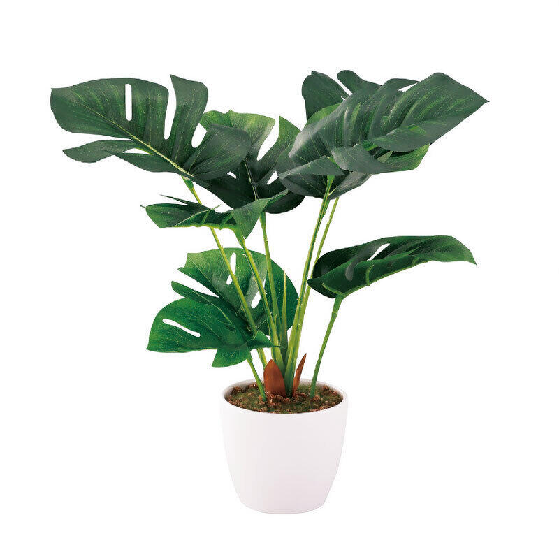 ハワイでは大きな葉の隙間から希望の光が差し込むといわれる幸運の木モンステラ。トロピカルな葉の表情をそのまま再現したテーブルサイズのフェイクグリーンです。