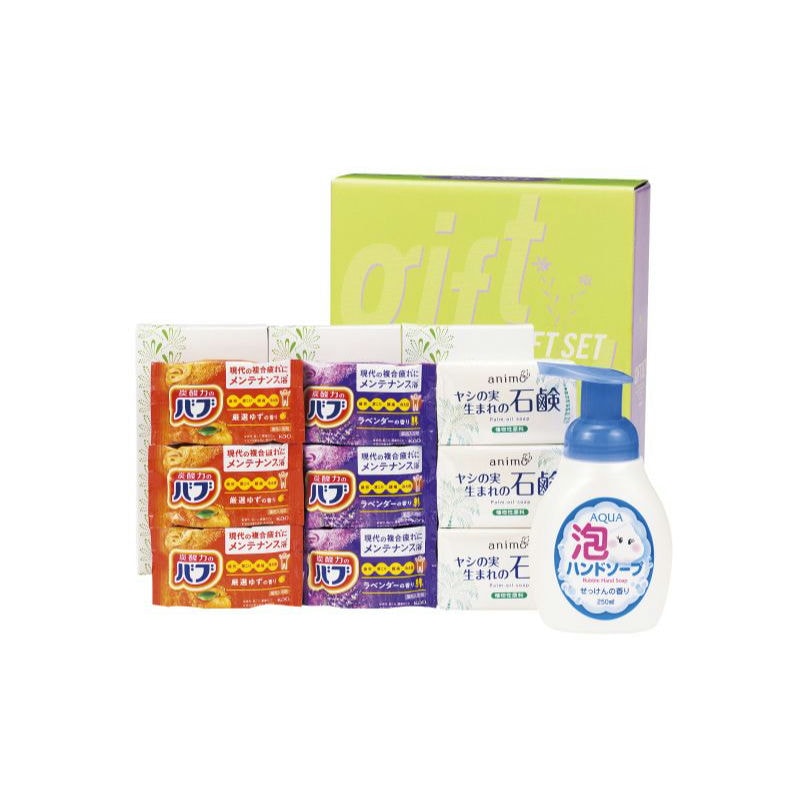 【商品内容】アクア泡ハンドソープ250ml・animoヤシの実石鹸3P・バブ(ゆずの香り・ラベンダーの香り)各3
