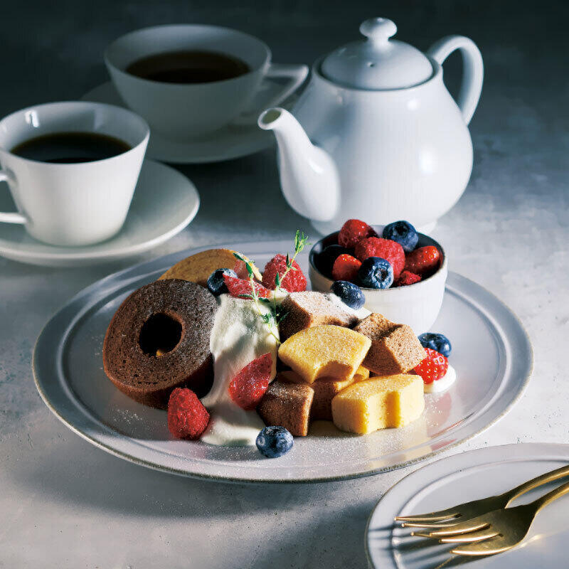 プレーンとショコラのバウムクーヘンと、しっかり焙煎した深い味わいのドリップコーヒーをお楽しみください。
