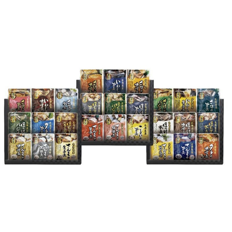 【商品内容】さけの旨煮80g・いわしの味噌煮95g・さばの水煮120g・ほっけのバジル80g・タラの旨煮80g・ほたてバター醤油65g・さんまの味噌煮95g・さんまの黒酢煮95g・さんまの生姜煮95g・さけの味噌煮80g・いわしの旨煮95g・さばの味噌煮120g・ほたての旨煮65g・ほたてのバジル65g・ほっけの旨煮80g・さんまの旨辛煮95g・さんまの梅酢煮95g・こまいの旨煮110g・さけのバジル80g・いわしの生姜煮95g・さばの旨煮120g・ほっけの水煮80g・ほっけの味噌煮80g・ほたての水煮65g・さんまのゆず塩煮95g・さんまの旨煮95g・タラの味噌煮80g