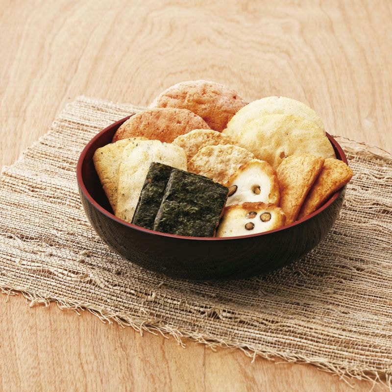 香り高い焼きのりを巻いたのり巻きあられや磯の香りひろがる青さ煎餅、柚子が香るスパイシーな柚子胡椒煎餅、海老とカレーが癖になる海老カレー煎餅、サクッとソフトなサラダ煎餅、焼き上げた海老が香ばしい厚焼きの海老塩煎餅など国産米100%にこだわった詰合せです。