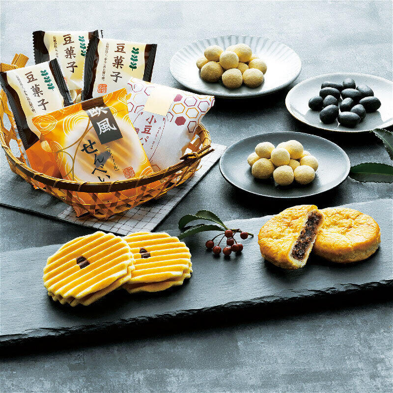 【商品内容】小豆パイ・欧風せんべい・豆菓子(竹炭×3・きなこ×2)