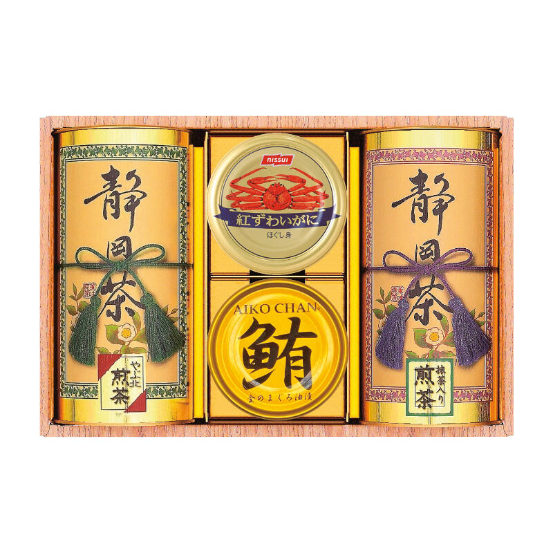 【商品内容】やぶ北煎茶80g・抹茶入り煎茶80g・紅ずわいがにほぐし身55g・鮪油漬フレーク70g