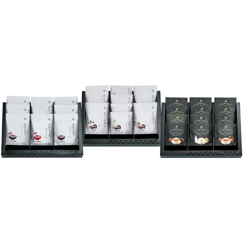 【商品内容】海鮮 だし味噌汁(生タイプ)ネギ・わかめ具材付き(かに×1・帆立×1)、貝 赤だし味噌汁(生タイプ)ネギ・わかめ具材付き(あさり×1・しじみ×1)、極だしわかめ入り味噌汁(生タイプ)(ネギと豆腐×2・キャベツとわかめ×1・かぼちゃとほうれんそう×1)、こだわりのスープ(濃厚カニビスク×2・海鮮の旨みブイヤベース×2・完熟とまとのミネストローネ×2)、