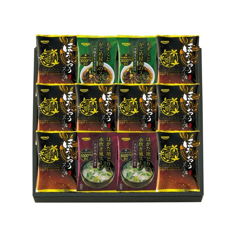 【商品内容】スープ(ほうおう)×8・スープ(はかた水炊き・もずく)各2