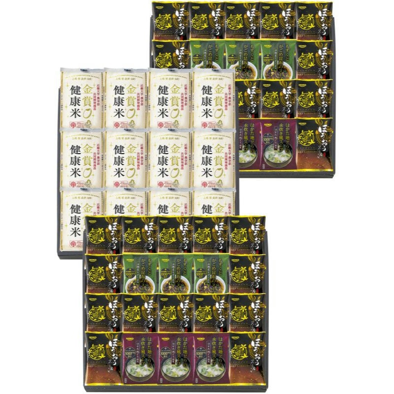 【商品内容】スープ(ほうおう)×28・スープ(はかた水炊き・もずく)各6・金賞健康米150g×12