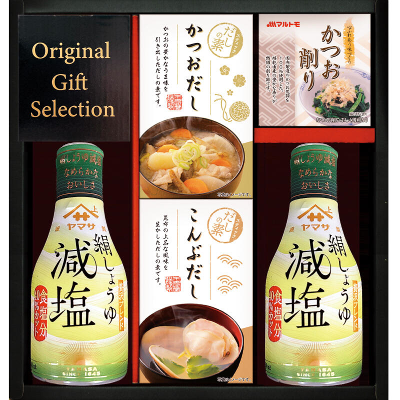 【商品内容】ヤマサ絹しょうゆ減塩200ml×2・かね七かつおだし(4g×5)・かね七こんぶだし(4g×5)・マルトモかつおパック(0.7g×3)