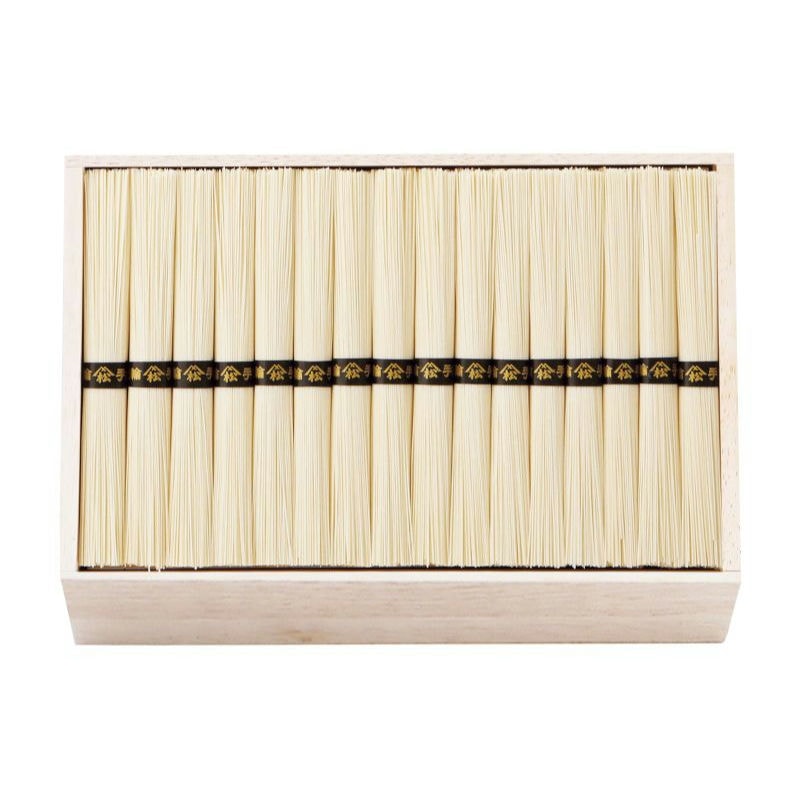 暑い季節は冷たく冷やして、寒い季節は温かいにゅうめんで。年中楽しめる木箱入り三輪素麺です。