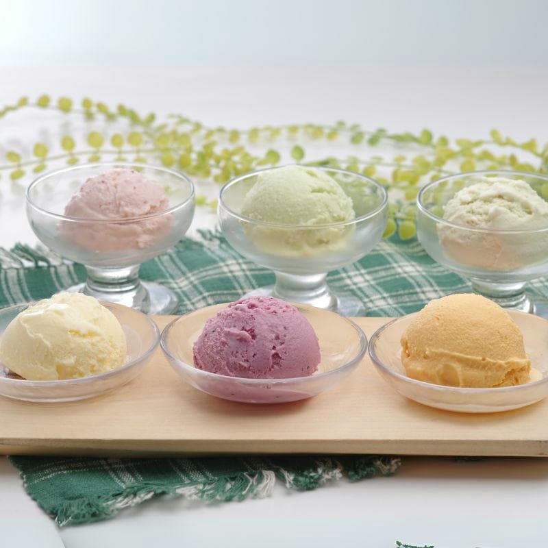 北海道産の果物や乳製品をふんだんに使ったアイスクリームを詰合せしました。北海道特産果実のハスカップをはじめ赤肉メロン、ストロベリー、定番のバニラとすっきりとしたクリームチーズなどバラエティ豊かな果物のアイスクリームのセットです。