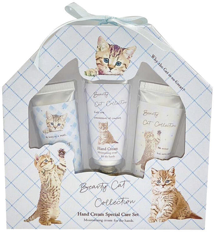 愛らしい猫をモチーフにしたパッケージのハンドクリームセットです。