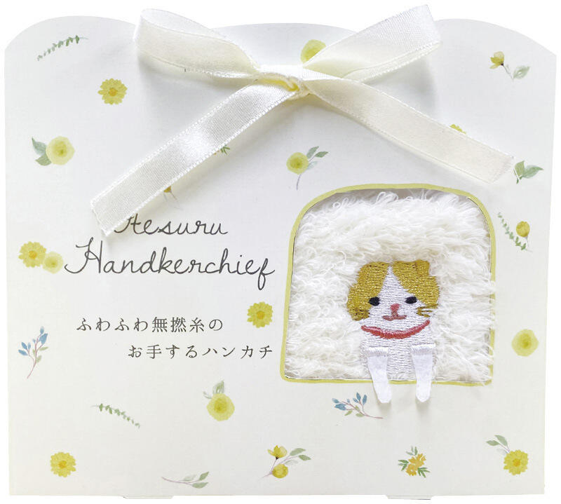 かわいい猫や犬が窓からお手をしている姿がかわいらしいハンカチは、ちょっとした贈り物にも喜ばれます。