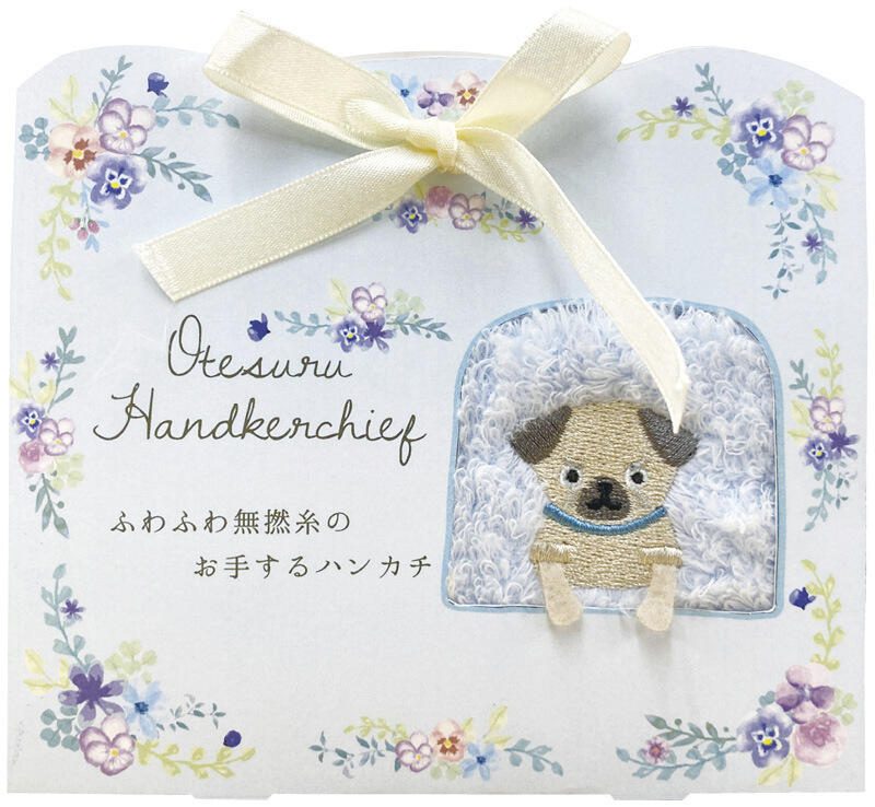 かわいい猫や犬が窓からお手をしている姿がかわいらしいハンカチは、ちょっとした贈り物にも喜ばれます。