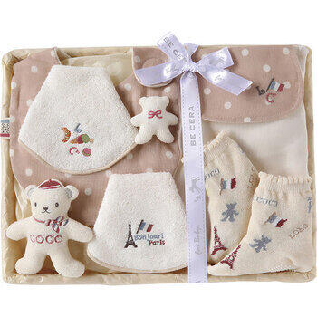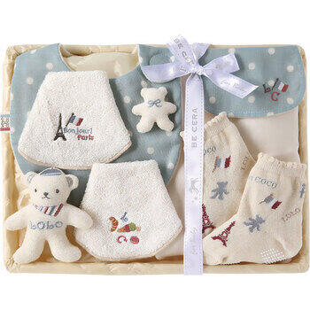 スタイ・汗取りパット・ソックス・ガラガラクマ×各1、授乳スタイ×2●(スタイ・汗取りパット・ソックス)家庭洗濯可(洗濯機・ネット使用)、(ガラガラクマ・授乳スタイ)家庭洗濯可(手洗い)●対象年齢:(ガラガラクマ)0ヶ月~