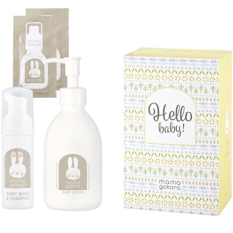 ベビーオイル、ミルクローション、全身シャンプーがセットになっており、赤ちゃんの肌に潤いを与えます。