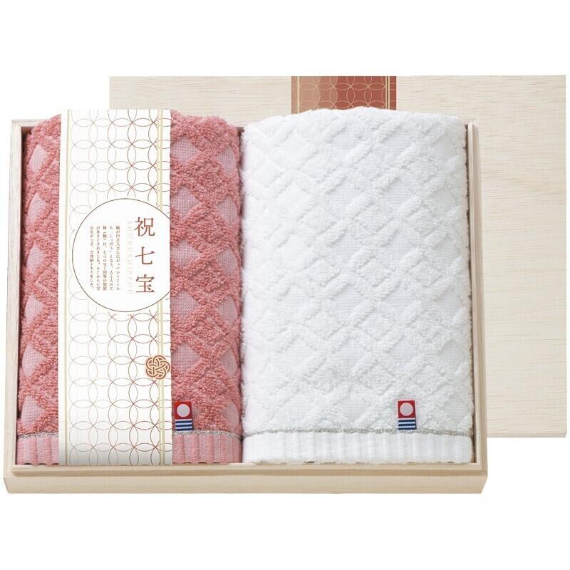 柄のモチーフは七宝柄。輪が四方八方に広がっていくことから『しっぽう』となり、人と人のご縁(輪)は、七つの宝と同等の価値があるとされた吉祥柄の今治タオルです。